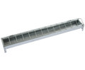 lange verzinkte voerbak voor pluimvee. geheel verzinkt, met draad overspannen en staat op pootjes.