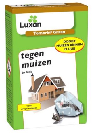 Tomorin Graan is een zeer aantrekkelijk lokaas tegen huismuizen dat uitsluitend in afgesloten gebouwen, zoals in huizen of schuren, mag worden toegepast. Het middel werkt snel en doorgaans is een éénmalige consumptie voldoende voor afdoding. Het lokaas in de lokaasdoos bestaat uit haverkorrels en zit verpakt in zakjes van 10 gram. Het aantal te plaatsen lokaasdozen dient te worden aangepast aan de omvang van de plaag en het bestrijdingsgebied.