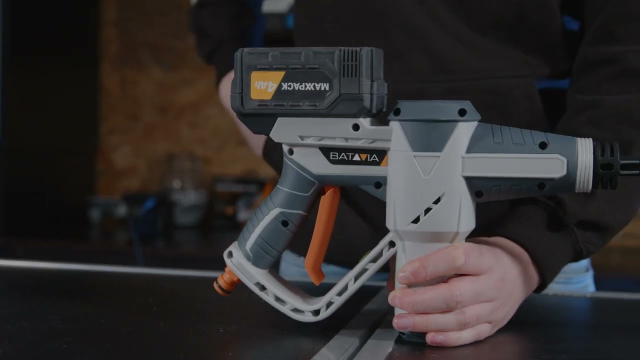 Het schoonmaken van je auto, boot, fiets of barbecue wordt vanaf nu een stuk leuker met de Nexxforce accu drukreiniger. Hiermee verwijder je heel gemakkelijk modder, vuil en stof. Je kunt de slang in elke waterbron laten zakken en de Nexxforce zet er vervolgens druk achter en je kunt aan de slag. Omdat de slang een waterfilter heeft, is elke sloot, emmer of zwemplas geschikt. Bovendien hoef je de Batavia Nexxforce niet op netstroom aan te sluiten. De drukreiniger werkt namelijk op een accu, dus je neemt hem zo overal mee naartoe.