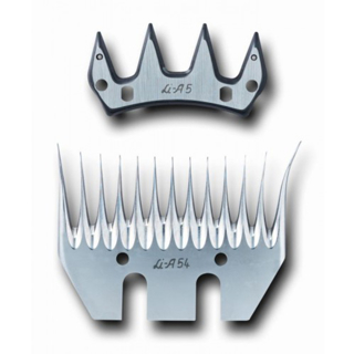 Naar buiten gerichte zijtanden aan het ondermes om de wol "in te trekken", om sneller te scheren.
