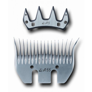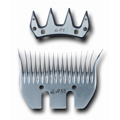 Naar buiten gerichte zijtanden aan het ondermes om de wol "in te trekken", om sneller te scheren.