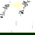 Metalen sectorsproeier met stelschroef voor nevel en een speciale arm om druppelvorming achter en bij de sproeier te voorkomen.