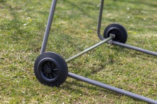 • zeer stabiel metalen frame met twee wielen en greep aan de zijkant voor optillen en eenvoudig verplaatsen