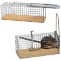 Vangkooi voor muizen of ratten gemaakt van verzinkt gaas met een houten bodem. Degelijke uitvoering.