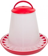 Gemaakt van hoogwaardig kunststof (pp-copolymer) waardoor minder kans op breuk ontstaat. Normaal pp gaat snel stuk en zeker tijdens een koude winter. De bodem en de cilinder zijn d.m.v. een bajonetsluiting aan elkaar bevestigd. Te gebruiken door op te hangen of op de bodem van het hok te plaatsen. Bij ophangen is het belangrijk dat de voerbak voldoende hoog hangt. Als leidraad kunt u de rughoogte van uw dier gebruiken. De uitsteeksels aan de cilinder zijn ervoor om te voorkomen dat uw dieren te veel in het voer krabben en zo voervermorsing tegen te gaan.