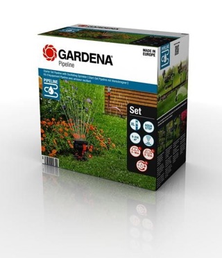 Met de GARDENA Pipeline Startset met Zwenksproeier creëert u een nieuwe en effectieve manier om uw tuin te bewateren. Behalve de apart verkrijgbare aanvoerbuizen en aansluitslang, bevat de set alles wat u nodig hebt om uw planten in de tuin voortaan comfortabel te bewateren. De dagen dat er overal tuinslangen liggen die opgerold moeten worden, zijn voorbij. Het Aansluitgarnituur functioneert als het verbindende element tussen de waterkraan en de aanvoerbuis in de grond. Met het meegeleverde T-stuk kunt u de buis ook nog aftakken in een andere richting. De twee Waterverdelers vormen handige watertappunten, waar u niet alleen een slang kunt aansluiten, maar ook de Zwenksproeier kunt gebruiken. Water tappen is nu net zo gemakkelijk als de kraan binnenshuis opendraaien. Zodra u een slang of de sproeier aan de Waterverdeler koppelt, wordt de verbinding gemaakt. Wanneer u de slang of de sproeier loskoppelt, wordt de watertoevoer door de geïntegreerde waterstop direct onderbroken. Met de Zwenksproeier kunt u flexibel zones van 9 tot 216 m² gelijkmatig en nauwkeurig bewateren, zonder dat er plassen ontstaan. De sproeikop kan handmatig 360° worden gedraaid. Het Aansluitgarnituur en de Waterverdelers zijn voorzien van een vuilzeef, en de sproeier van een filter, waardoor ze tegen vuil worden beschermd. De zeef en het filter kunnen worden verwijderd om gemakkelijk onder stromend water te worden schoongemaakt. Alle onderdelen zijn van hoogwaardige materialen gemaakt en dus zeer duurzaam en uv-bestendig. Door op het laagste punt het Ontwateringsventiel te installeren, wordt het systeem tegen mogelijke schade door vorst beschermd. De Startset kan onbeperkt met Pipeline-onderdelen worden uitgebreid. De GARDENA Pipeline Startset met Zwenksproeier wordt in Europa vervaardigd. Water waar het nodig is. Gemakkelijke toegang tot water: aanvoerbuizen onder de grond.