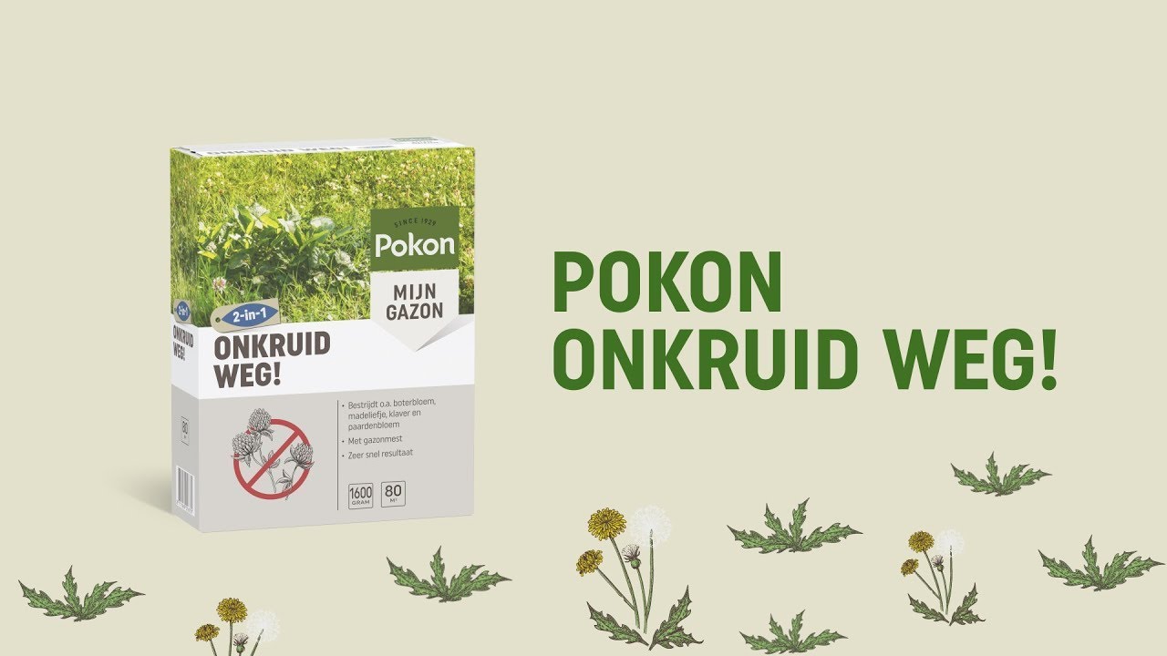 Pokon Onkruid Weg! is een gazonmest met een NPK van 22-5-5 .i.c.m. met een onkruidbestrijder. Werkzame stof: 8 g/kg 2,4-D en 1,2 g/kg dicamba. Gebruik gewasbeschermingsmiddelen veilig. Lees vóór gebruik eerst het etiket en de productinformatie.