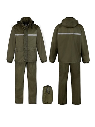 Regenpak met Reflectie streep Olijfgroen, M