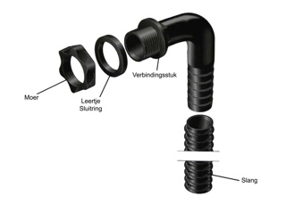 De overloopset is ideaal als je regenton vol is. Het water gaat dan via de overloopset naar de gewenste plaats. De overloopset heeft een haakse aansluiting waardoor de slang nooit zal knikken. Dit zorgt ervoor dat overloopset het altijd zal gaan doen. De slang heeft een lengte van 150 cm.