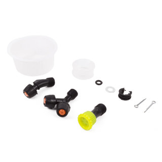 Spuitdoppen bijgeleverd; werveldop, dubbele werveldop en 4 stralen dop