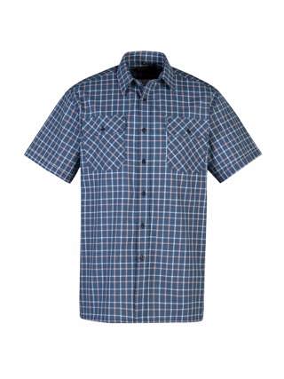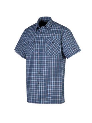 De Farsund ruitoverhemd met korte mouwen van 100% katoen heeft een geblokt patroon. Kleur blauw geblokt