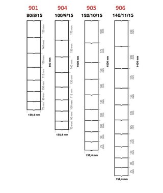 • 80 cm hoogte: 75, 90, 100, 115, 130, 140, 150 mm
