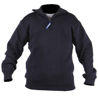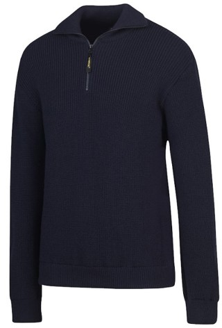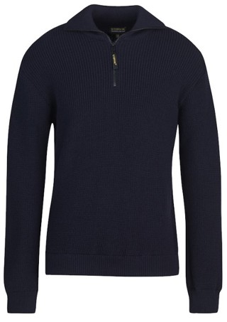 De Augusta is een mooie schipperstrui van 50% acryl / 50% wol met een ritssluiting bovenaan, een hoge afsluitbare kraag en boord in de mouwen en onderzijde.