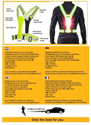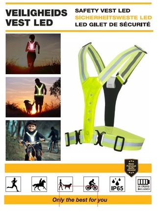 Met dit Led vest bent u (ook op lange afstand) goed zichtbaar voor anderen, door de reflecterende kleuren en Led lampjes.