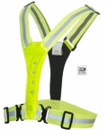 het X-vormige vest is felgeel en voorzien van reflecterende banen. Aan de voorzijde vind je bovendien 4ledlampen en aan de achterzijde 4 ledlampen.