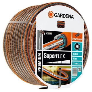 De GARDENA Premium SuperFLEX slang met Power Grip profiel staat garant voor de perfecte verbinding tussen slang en slangstuk. Dankzij de nieuwe technologie, grijpen ze in elkaar als tandwielen. Het Power Grip profiel vervult de wens van veel tuinbezitters: een betrouwbare verbinding met optimaal houvast. Een positief neveneffect van het verhoogde profiel: de slang is makkelijker op te rollen en glijdt goed. Dankzij de hoge dichtheid van het hoge-kwaliteits spiraalweefsel textiel met twee spiralen die werken in tegengestelde richting, is de slang bijzonder drukbestendig en vormvast. De Premium SuperFLEX is de meeste flexibele slang van GARDENA. Dit komt door de grotere dichtheid van de spiralen, waardoor de slang nog flexibeler en gemakkelijker te hanteren is. Raakt niet in de knoop en verdraait niet. Optimale voorwaarden voor comfortabel en flexibel gebruik in uw tuin. Indien gewenst, systematisch uit te breiden met Original GARDENA System koppelstukken en besproeiingsproducten. De slang is vrij van schadelijke weekmakers (ftalaten) en zware metalen en is natuurlijk UV-bestendig. De dikke wanden maken de slang bijzonder veilig, robuust en duurzaam.
