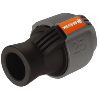 Het Gardena verbindingsstuk 25 mm x 3/4" binnendraad vormt - als onderdeel van het Gardena sprinklersystem - de aansluiting op het Gardena aansluitgarnituur