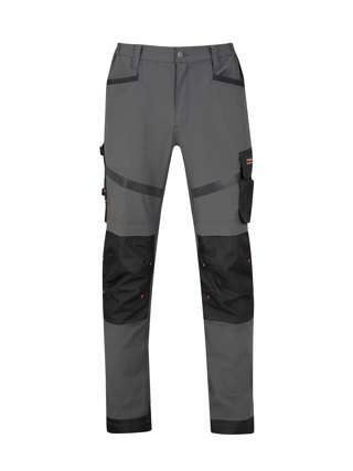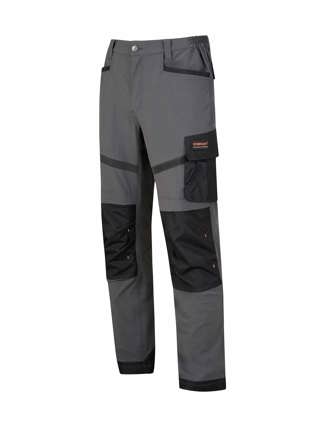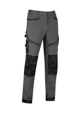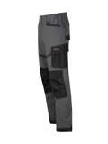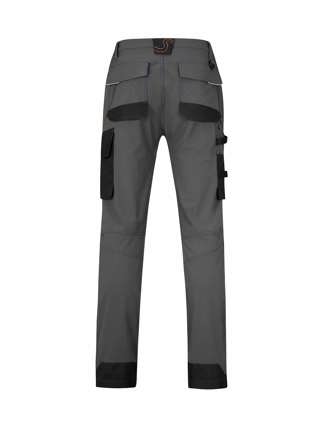 De 4-way stretch werkbroek is ontworpen voor comfort, zodat je de broek de hele dag kunt dragen. Een elastische tailleband zorgt ervoor dat de broek comfortabel blijft zitten tijdens het bewegen. De samenstelling van de stretch-stof is 92% polyamide en 8% spandex. De stretchbroek heeft Oxford kniestukken die slijtage op de knievlakken van de broek tegengaan. De Oxford polyester stof is eveneens aangebracht aan de binnenzijde van de enkels tegen het slijten door beweging tijdens het lopen. Polyamide stof van de broek is water en vuil afstotend, wat erg handig is om de werkbroek droog en netjes te houden. Deze broek is voorzien van een D-ring en diverse opbergzakken voor gereedschap en andere benodigdheden. Op de rechter dijbeen zijn 2 opgestikte open zakken, een pennenzak en een hamerlus aangebracht. Op de linker dijbeen bevinden zich cargo- en een met klittenband afsluitbare telefoonzak en 2 pennenvakken. Aan de voorzijde zitten 2 open steekzakken en aan de achterzijde 2 met klittenband afsluitbare zakken. Reflectie is aangebracht aan de voorzijde op de bovenbenen en aan de achterzijde ter hoogte van de klepzakken.