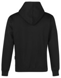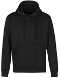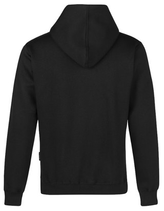 Voorzien van vaste capuchon, open buikzak en verstelbare koorden.