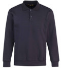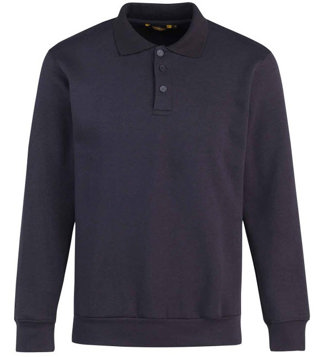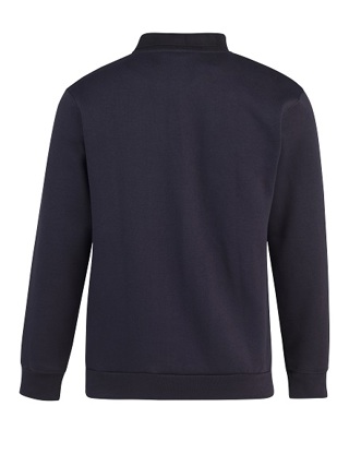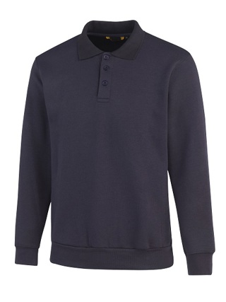 280 gr/m², 50% katoen / 50% polyester, binnenzijde geruwd, polokraag met knoopsluiting, tailleband en manchetten met elasthan