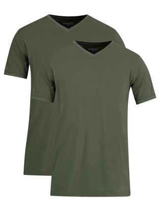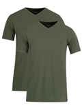 T-shirt olijfgroen V-hals 2-pack