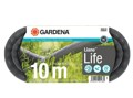 De Textielslang Liano™ Life 10 m Set van GARDENA is meteen klaar voor gebruik, voor korte en middellange bewatering of voor eenvoudig schoonmaakwerk. De set bevat de 10 m lange Liano™ Life met een diameter van 13 mm (1/2") voor gebruik in middelgrote tuinen, de voorgemonteerde Original GARDENA System-onderdelen: het Liano™ Slangstuk, maar ook de Liano™ Waterstop, een Reinigingspistool en twee Kraanstukken. Het reduceerstuk in een van de kraanstukken laat je de textielslang op in totaal drie kraanmaten aansluiten. De tuinslang krijgt zijn betrouwbare prestaties van zijn flexibele PVC-binnenslang en de innovatieve buitenslang, gemaakt van bestendig textiel. Bij het bewateren of schoonmaken is de elasticiteit een grote steun, want de Liano™ Life knikt niet en blijft minder snel haken achter obstakels. De Liano™ Life is tot wel 50% lichter dan conventionele PVC-slangen. Dit maakt het moeiteloos om hem over de vloer te slepen. Dankzij zijn aangename textuur is hij comfortabel te hanteren, zelfs na langdurig gebruik. Als het aankomt op ruimtebesparende opslag, past de Liano™ Life zich aan aan de beschikbare opbergruimte dankzij zijn flexibiliteit, wat opbergen op de plank of in de garage vereenvoudigt. De textielslang heeft een barstdruk van 22 bar en zijn uv- en vorstbestendigheid maken hem geschikt voor buitengebruik, het hele jaar door. Hij is bovendien vrij van schadelijke stoffen zoals ftalaten (<0,1%), maar ook cadmium, lood en barium (<0,1%).