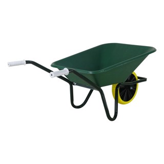 Lichte kruiwagen voor het gebruik in de tuin en om het huis, geschikt voor bladeren, gras, zand en lichte materialen. Kunststof bak van 90 liter inhoud. Frame uit 1 stuk gebogen, daardoor sterk en toch lichtgewicht, met kiepbeugel.