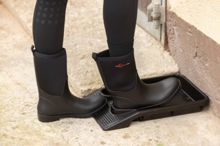 Innovatieve bak voor het uittrekken van schoenen en laarzen. Ontwikkeld om zonder moeite en zonder handen schoenen en laarzen uit te trekken en netjes op te bergen.