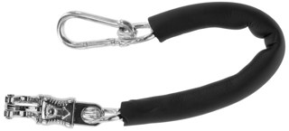 deze zeer stevige vastzetlijn is ideaal voor op de wasplaats of in de trailer. de ketting is geplastificeerd, waardoor het fijner is in gebruik. de ketting heeft aan de ene zijde een karabijnhaak en aan de andere zijde een paniekhaak.