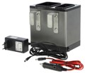 Wordt geleverd met een autostekker en een adapter voor aansluiting op een 230-volt voeding.