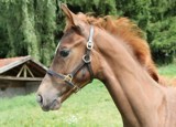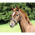 Dit veulenhalster is van zeer soepel leder en speciaal afgestemd op veulens. Het is een licht halster met een smalle, verstelbare neus- en halsriem met gespen.