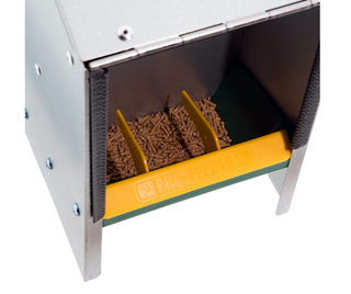 *De twee tussenschotjes zijn standaard gemonteerd, maar kunnen eenvoudig worden verwijderd, afhankelijk van het gebruik en persoonlijke voorkeur. Ze helpen tegen “spelen met het voer”, maar zijn bijvoorbeeld minder geschikt voor eenden.