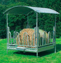 • het net wordt over het voeder / de baal gespannen, zodat de dieren