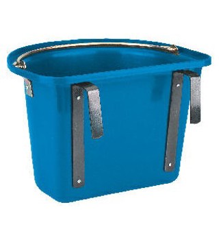 de bekende ideale voerbak met geplastificeerde ophangbeugels en metalen hengsel. zeer goede kwaliteit, inhoud: 12 liter in diverse kleuren.