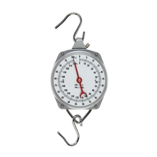 hangweger tot 100kg met 500gr aanduiding weegschaal, hangmodel met schaalverdeling. inclusief losse haak. metalen behuizing.