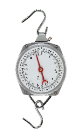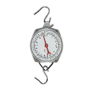 weegschaal, hangmodel met schaalverdeling. inclusief losse haak. metalen behuizing.