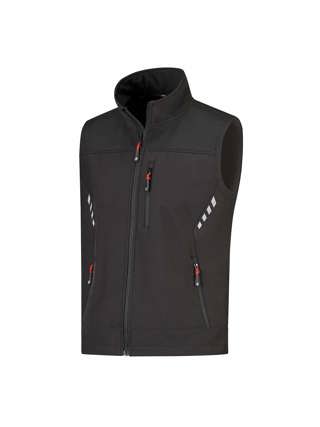 Een dunne fleece voering en een verstelbare elastische taille maakt de bodywarmer winddicht en licht warmhoudend. De opstaande kraag en een flap achter de rits beschermen eveneens tegen wind. De werk bodywarmer is gemaakt van polyester met stretch (96% polyester, 4% elastine). Dit maakt de bodywarmer slijtvast, waterafstotend en comfortabel om in te bewegen tijdens het werk. Reflectie is aangebracht aan de zijkant van de borst en in de kraag. Deze bodywarmer heeft praktische opbergzakken: 2 heupzakken met rits, een borstzak met rits en 2 open binnenzakken. De dun gevoerde Troms is een comfortabele bodywarmer waarin je het hele jaar door werkt.