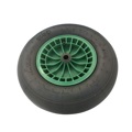 velg van polypropyleen kunststof, kleur groen. geen roestvorming en geen vastroestend lager. met binnenband.