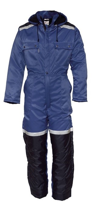 verdekte 2-weg kunststof ritssluiting met verdekte drukknopen, 2 zijzakken, 2 intasten, 2 borstzakken met klep, 2 achterzakken, duimstokzak, elastiek in rug, capuchon, reflectieband, windvangers, pijpen verstelbaar d.m.v. klittenband, kunststof rits in zijbenen, waterdichte schouders en voorbeen