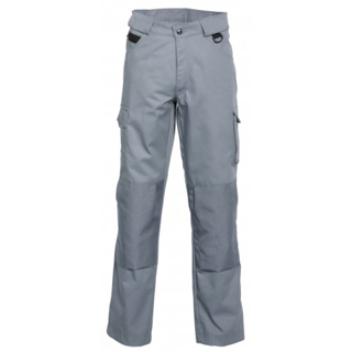 Havep Werkbroek. Ritssluiting, 2 ingezette zijzakken waarvan 1 met horlogezakje, 2 achterzakken met klep, duimstokzak met rolmaatzakje, dijbeenzak met klep en GSM-zakje. Cordura® kniezakken, Cordura® versterkingen en 2 D-ringen voor en achter.