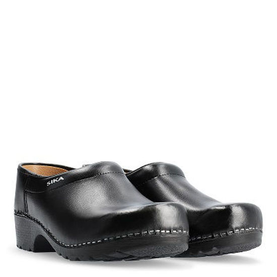 Klompen met houtenzool en dichte hak.
